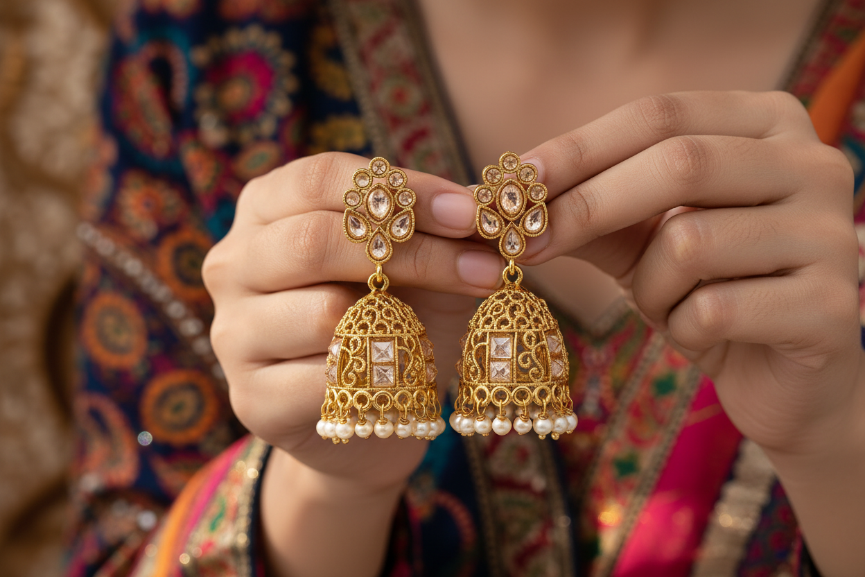 Crafted with meticulous detail, the Antique Cascade Jhumkas feature a cascade of delicate beads and filigree, creating a mesmerizing visual impact. The antique finish adds a touch of nostalgia, evoking the grace of traditional jewellery.